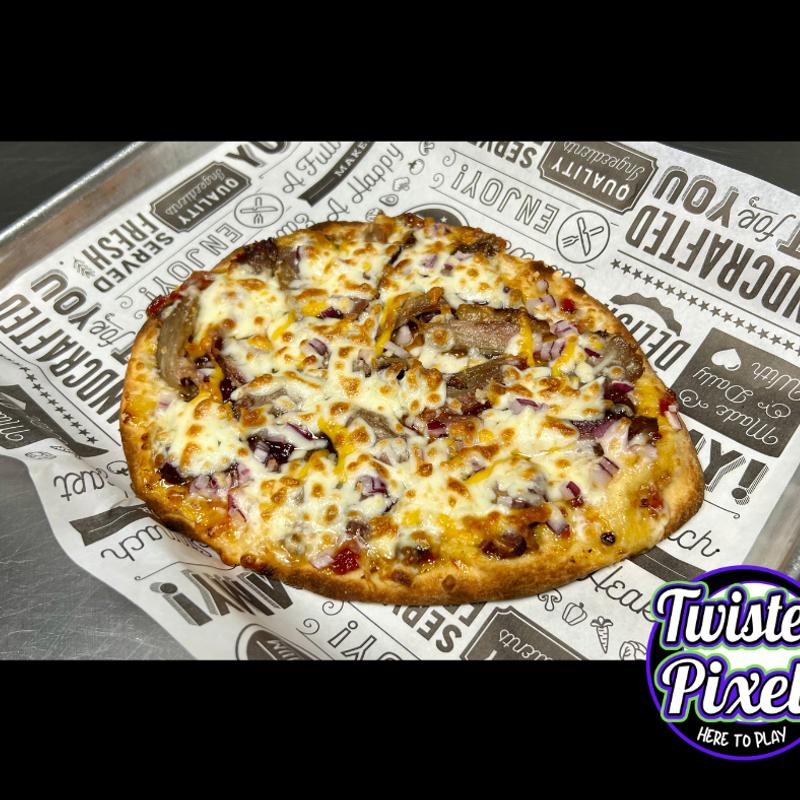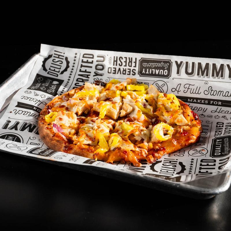 Bacon habanero jam, chicken breast, red onion, banana pepper, and a mix of cheddar and mozzarella cheese.