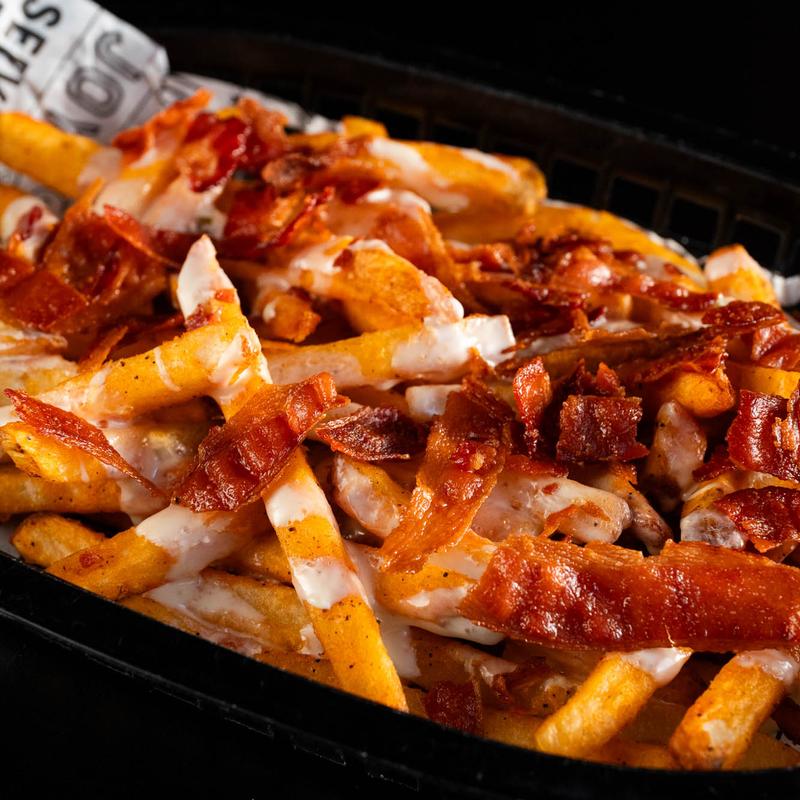 Bacon | Banana Peppers | Brisket | Black Olives | Chicken | Brussels Sprouts | Philly Steak | Green Pepper | Pepperoni | Sausage | Buffalo Sauce | Jalapeño | Mushrooms | Cheddar Jack Mix | Red Onion | Feta | Red Peppers •