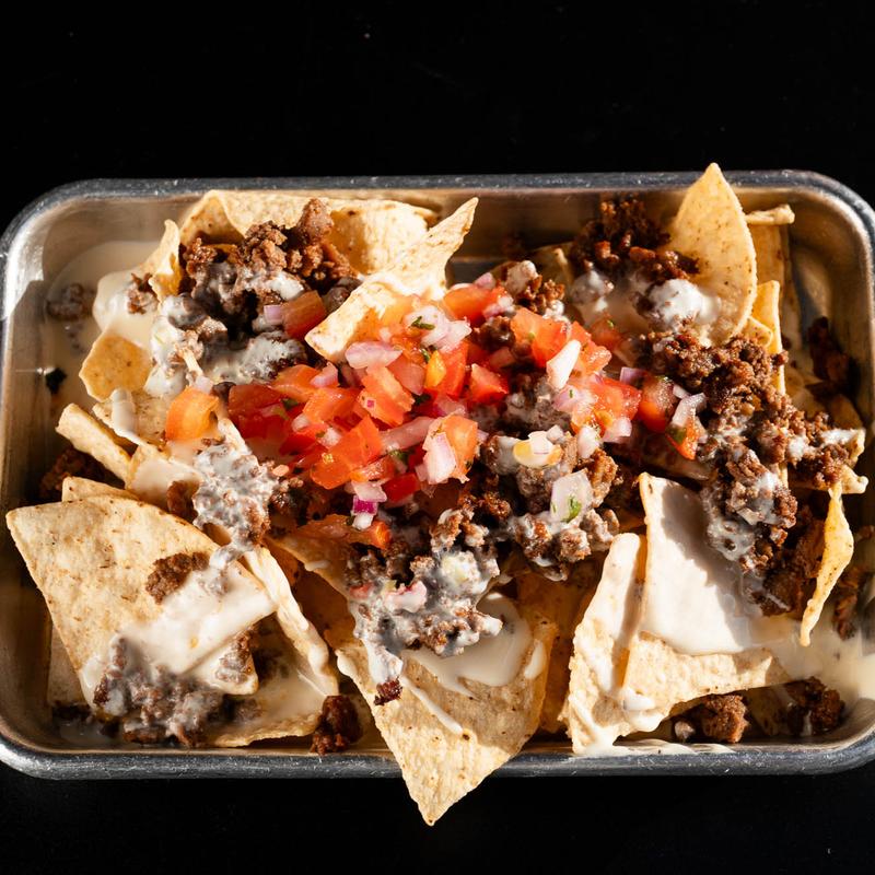 Chicken $12.00 | Beef $12.00 | Brisket $13.50 • All nachos topped with house-made pico de gallo and queso.
